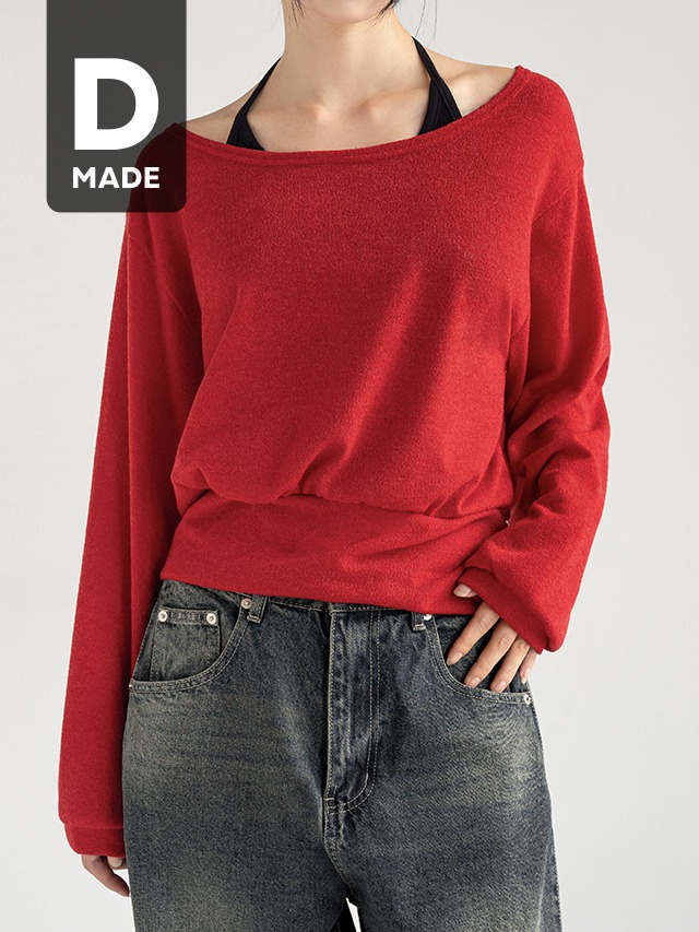 [2천장돌파][MADE] 빅사이즈 55-100 베디아 유넥 오프숄더 사이드 버튼 세미 크롭 긴팔 니트 티셔츠