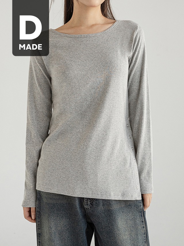 [MADE] 빅사이즈 55-99 헤디브 사이드 슬릿 스냅 버튼 유넥 레이어드 오버핏 긴팔 티셔츠