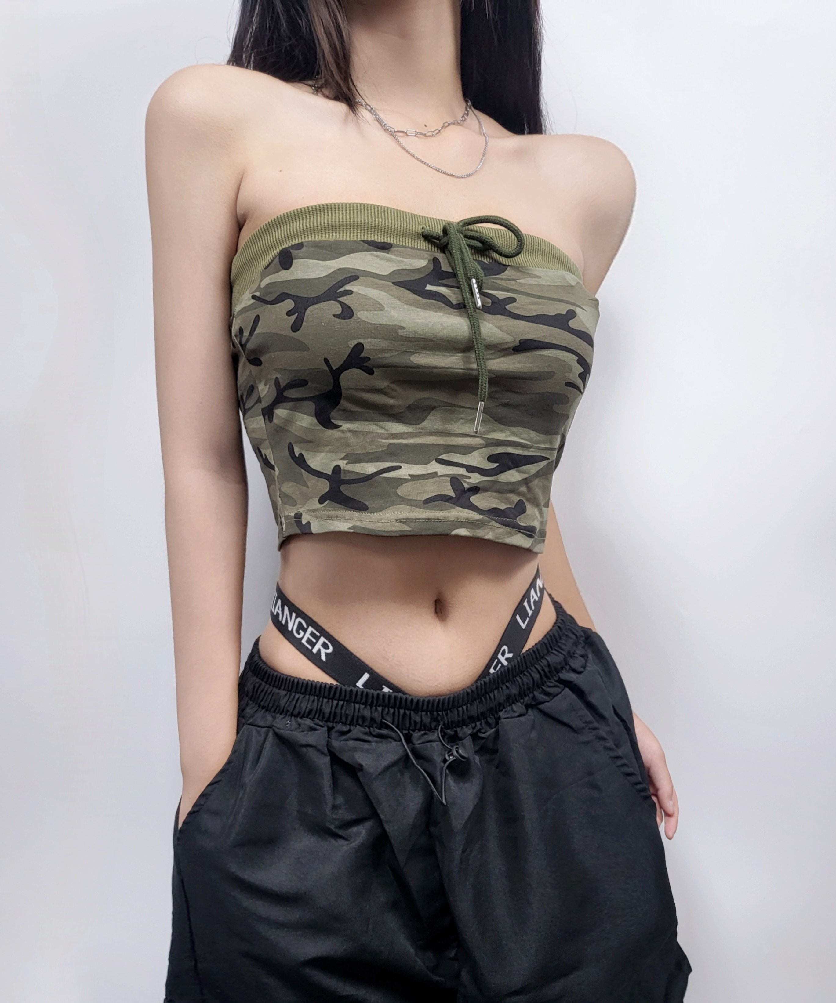 [당일🚚/힙무드🎧] 밀리터리 밴딩 튜브탑 Y2K 힙합 댄스의상