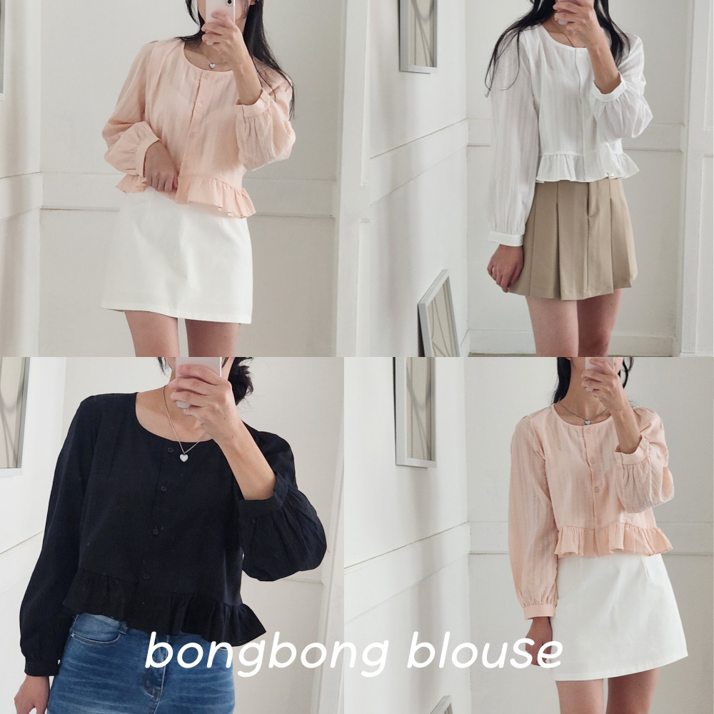 라운드넥 세미크롭 긴팔 블라우스 셔츠 숏 봄 가을 결혼식 하객룩 데일리 데이트 오피스