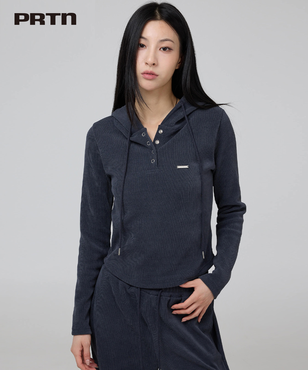 [단독]PRTN)포르테나 코듀로이 로고 후드 탑