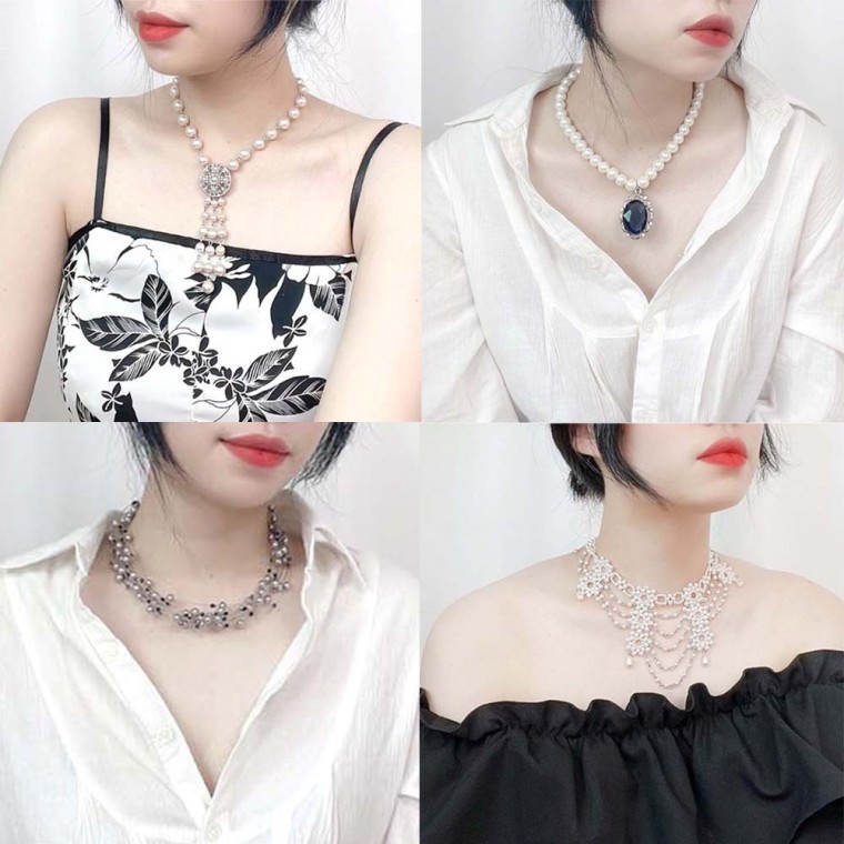 목걸이 저렴한가격 데일리 화려한 레이어드 진주목걸이