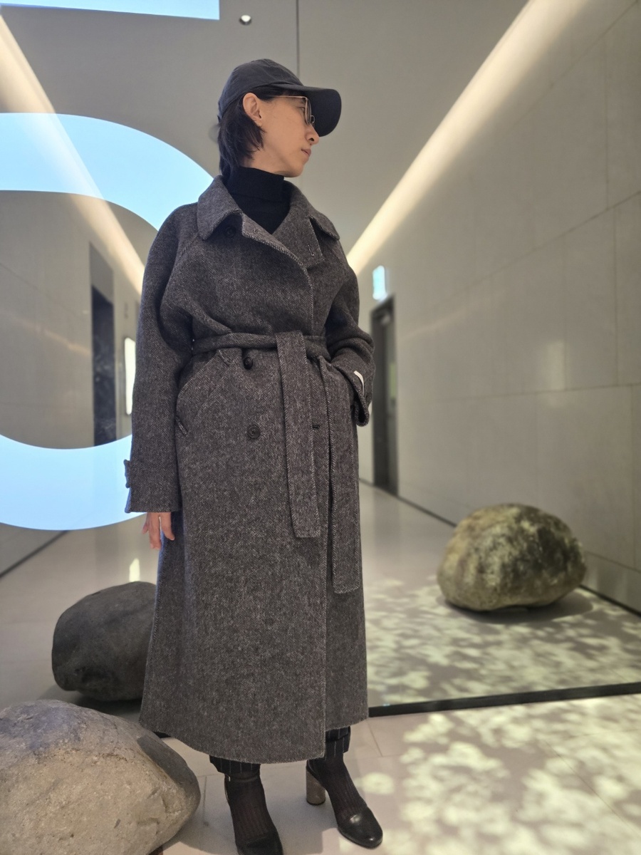 울 100% 헤링본 롱 더블 벨트 핸드메이드 코트