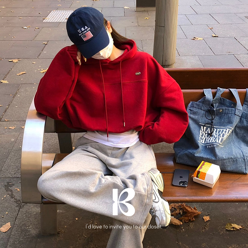 [MADE/아방핏]덤플링 절개선 밴딩 크롭 후드티