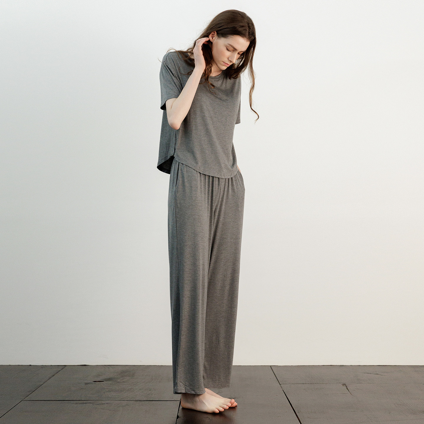 캡 내장 베로나 여성 잠옷 세트 홈웨어 파자마 차콜