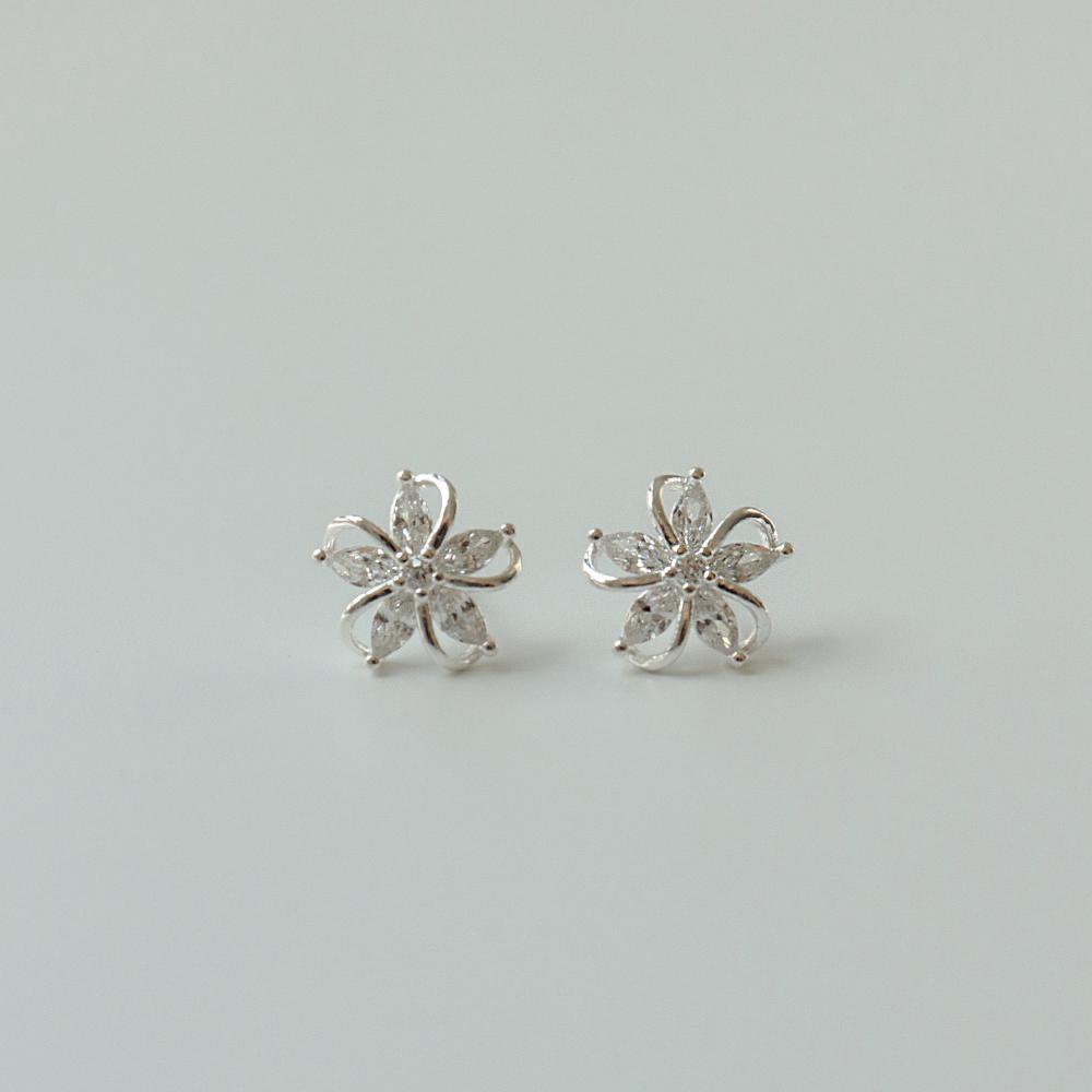 silver925 회오리 입체 플라워 큐빅 귀걸이