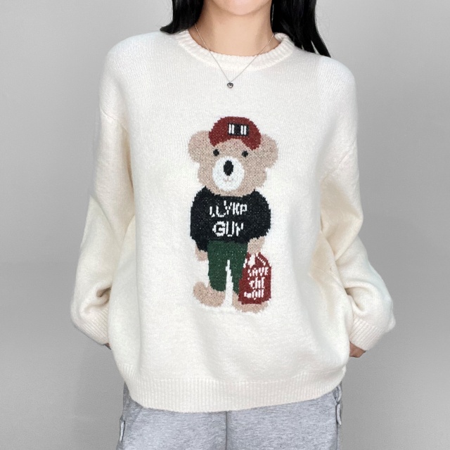 리틀 베어 박시핏 오버핏 라운드 니트 남녀공용 커플템 테디베어