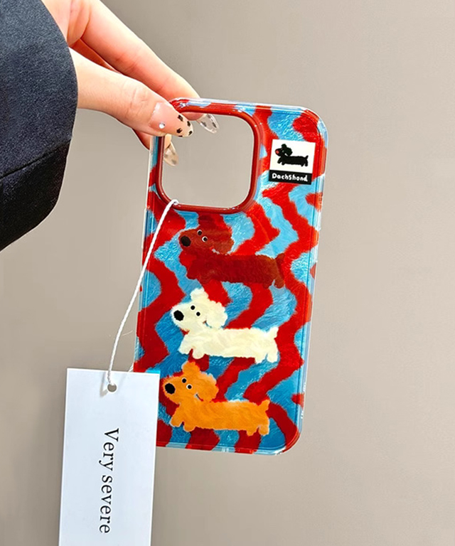 아이폰17🍎레드블루 줄무늬 닥스훈트 아이폰케이스 11.PRO.12.13.14.15.16.17 PROMAX.프로맥스