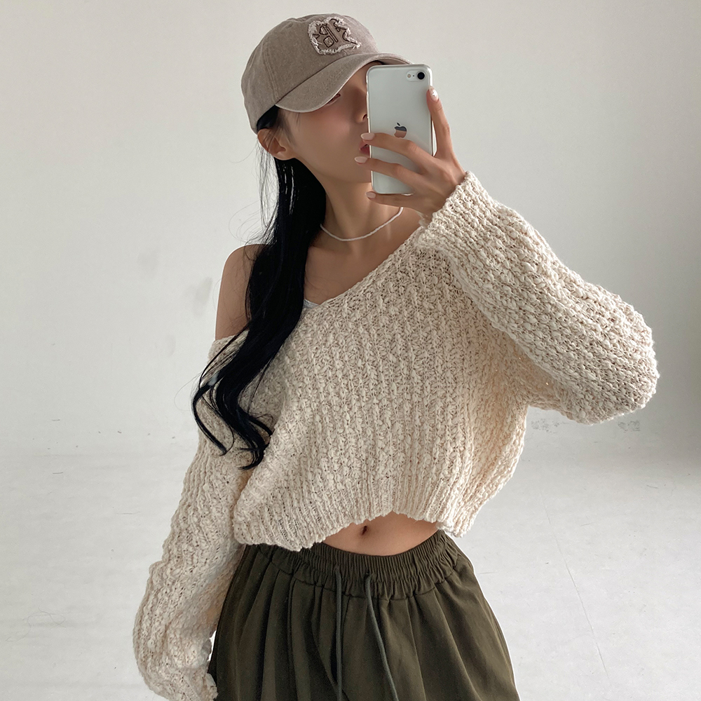 [무료배송][러블리❤]푸들 원숄더 긴팔 니트 - md소장! 데일리 여리핏 크롭니트 꾸안꾸 가을 겨울