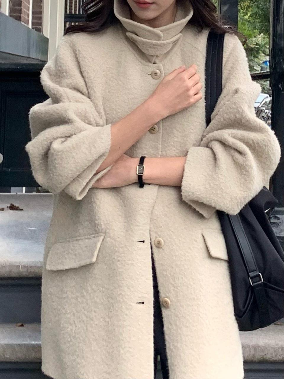베르가못 스노우 핸드 코트 하이넥 싱글 하프 알파카 ct (3 color)