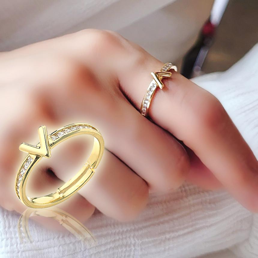 럭셔리 V 브이 큐빅 심플 골드 반지 명품 주얼리 명품 반지