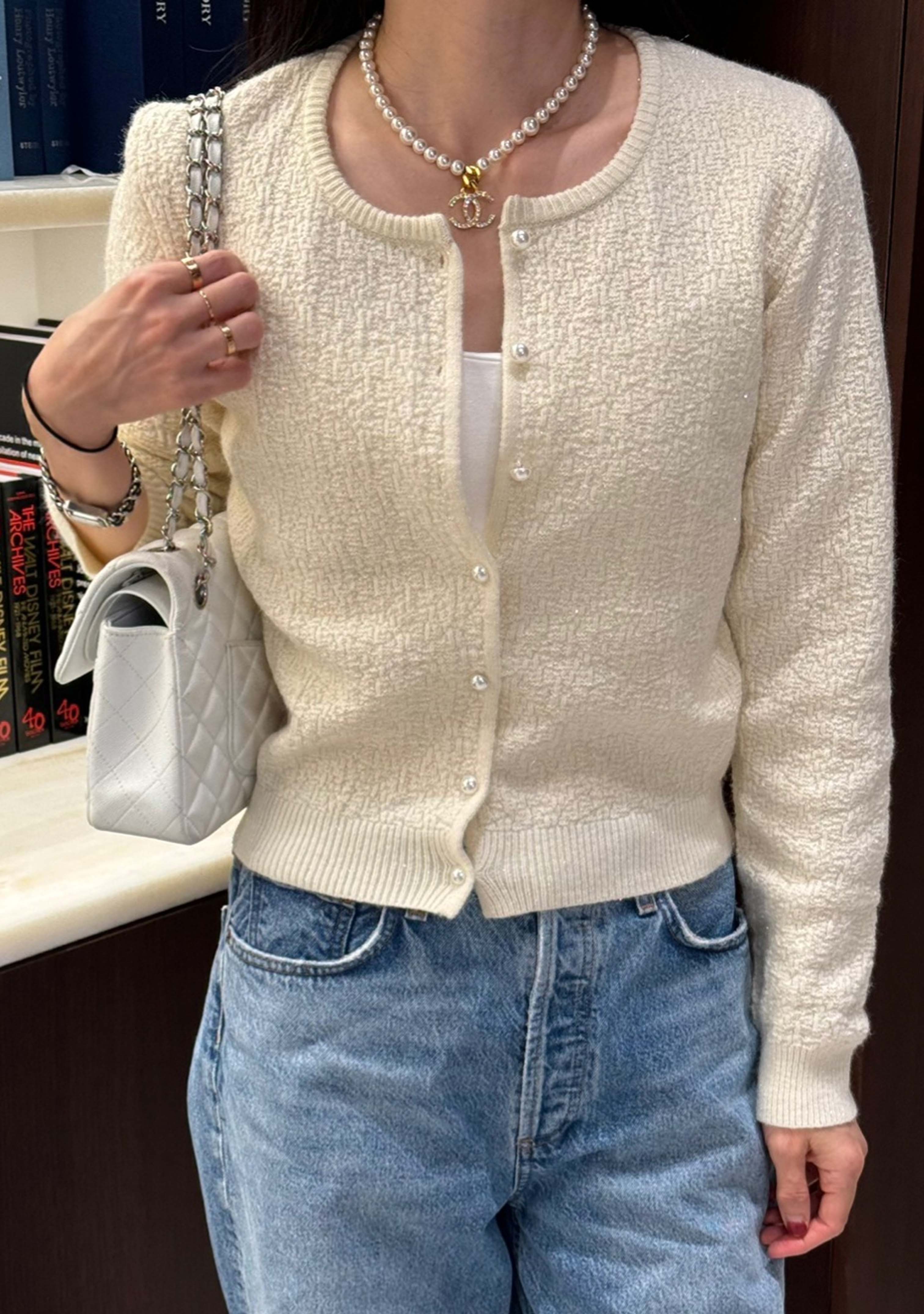 [간절기/2컬러]샤기 메탈 도톰 라운드 가디건