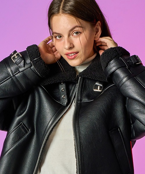 (남녀공용) B3 소매벨트 오버핏 무스탕 자켓 [All_Black]