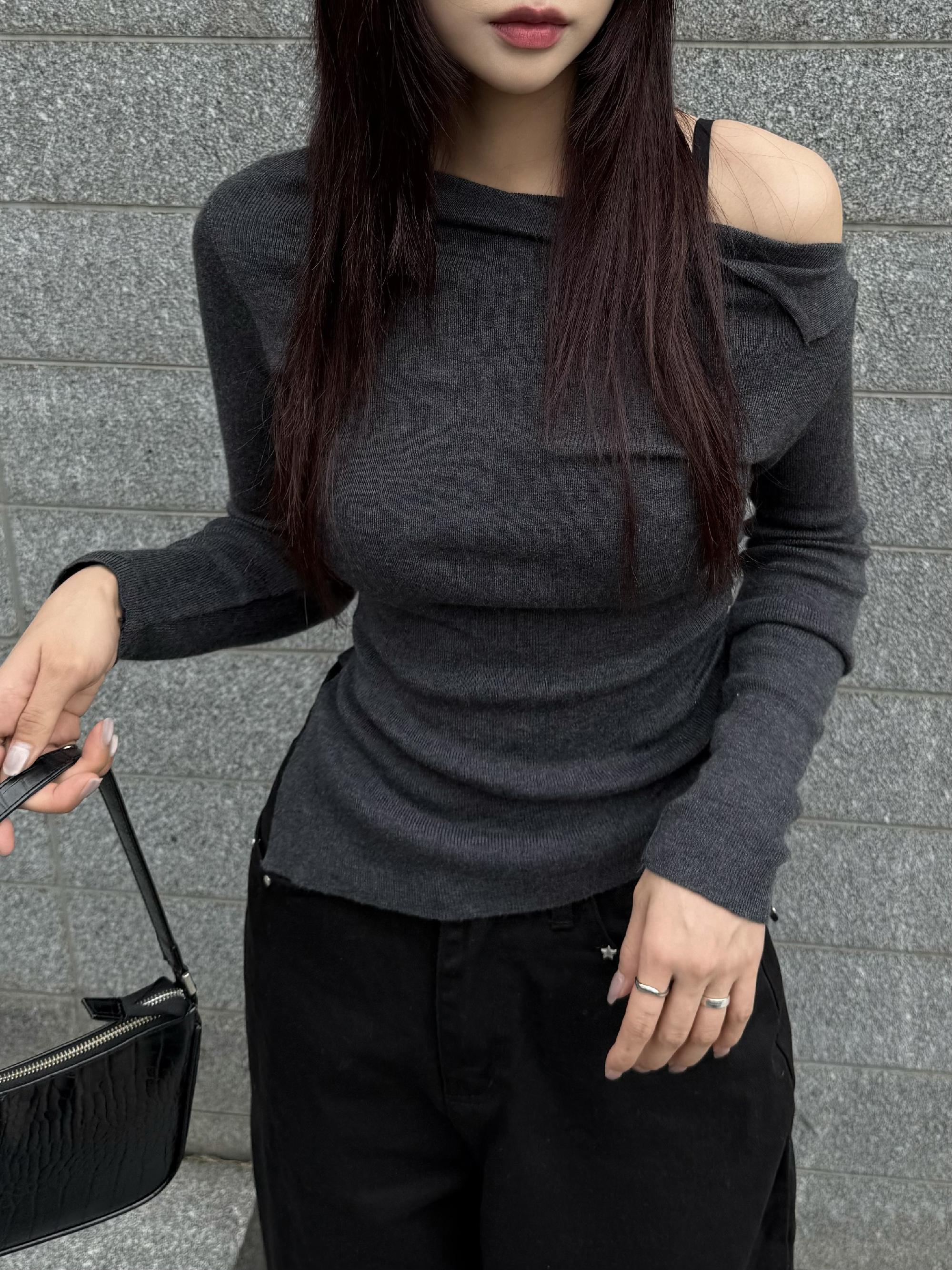 ✨여리핏✨[단독진행🖤/스판짱💖] 로어 슬릿 언발 오프숄더 니트
