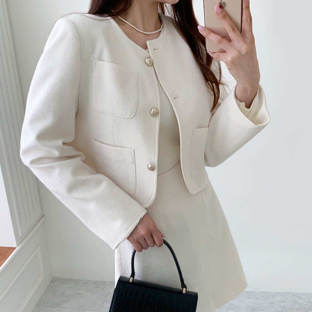 크롭 숏 여성 자켓 트위드 가을 간절기 재킷