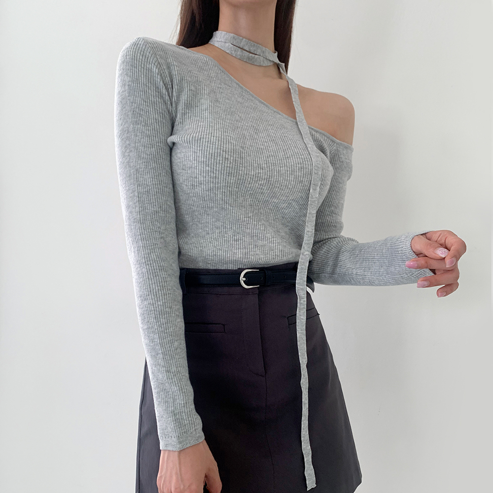 가을 긴팔 니트 여성 오프숄더 티 티셔츠 롱슬리브 여자