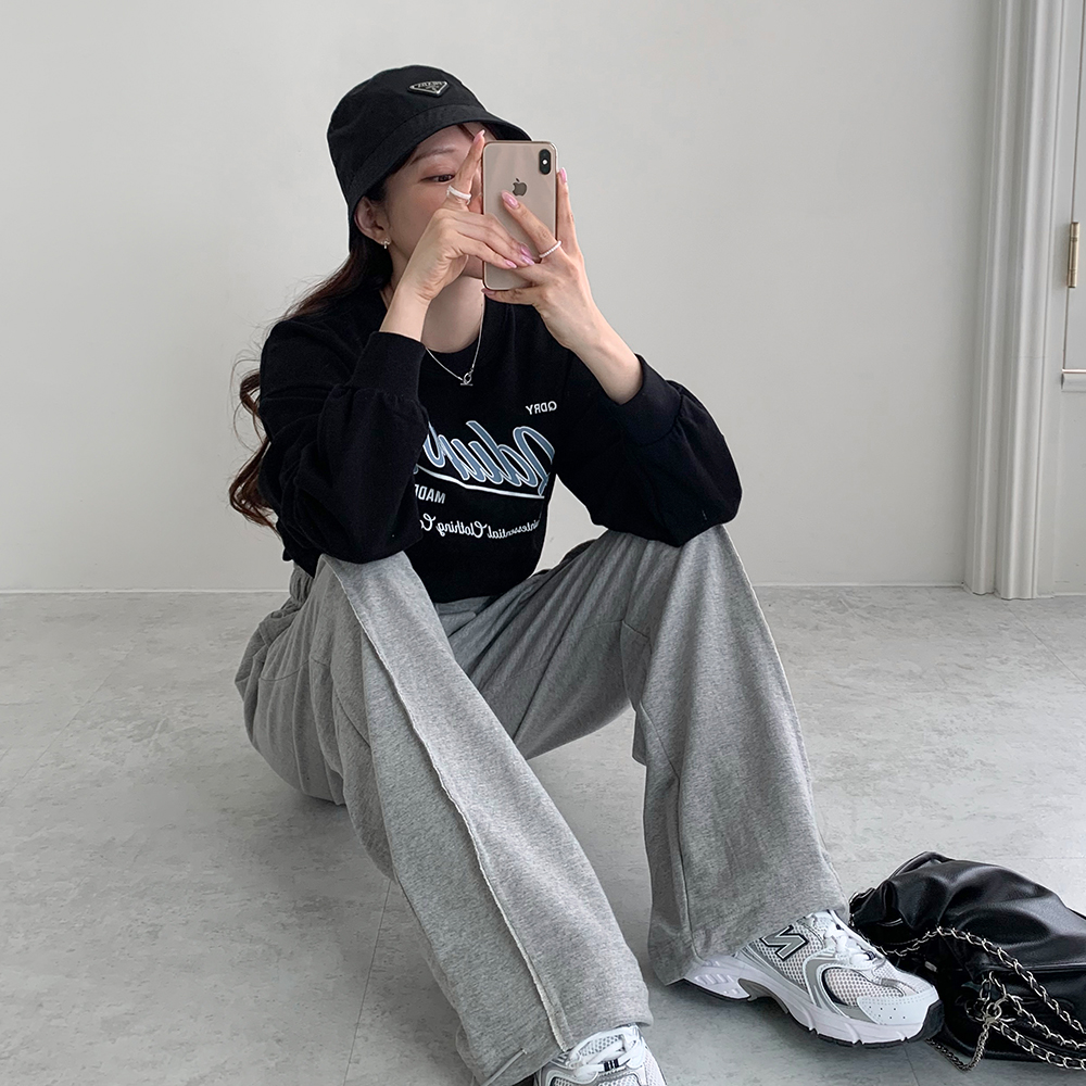 긴팔 맨투맨 티 프린팅 여성 오버핏 크롭 여자 맨투맨