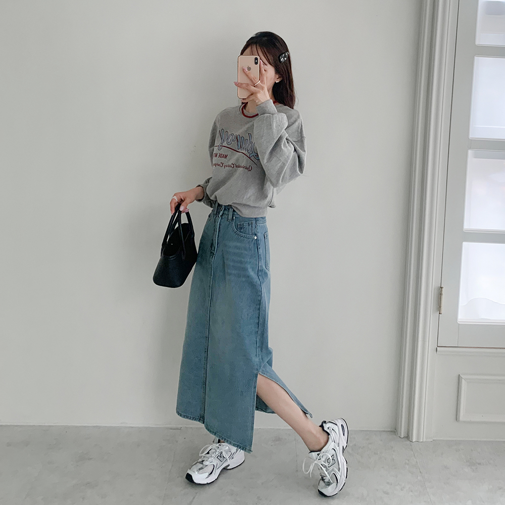[S-L] 데님 롱 스커트 청 H라인 치마 빅사이즈