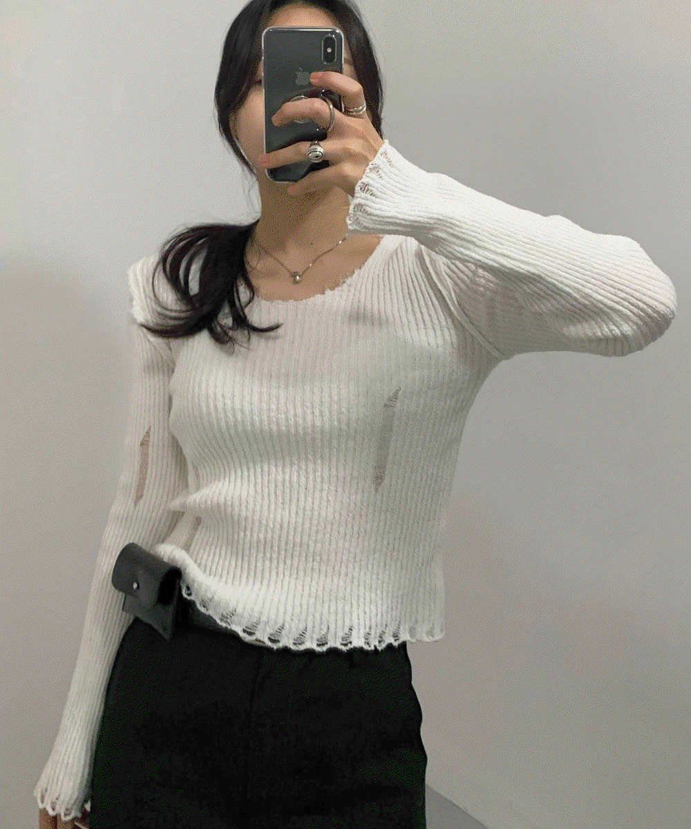[fw신상/문의폭주] 빈티지 데미지 크롭 니트 라운드 유니크 겨울니트 가을니트 - 데이트룩/페미닌룩/데일리룩/유니트룩/연말룩