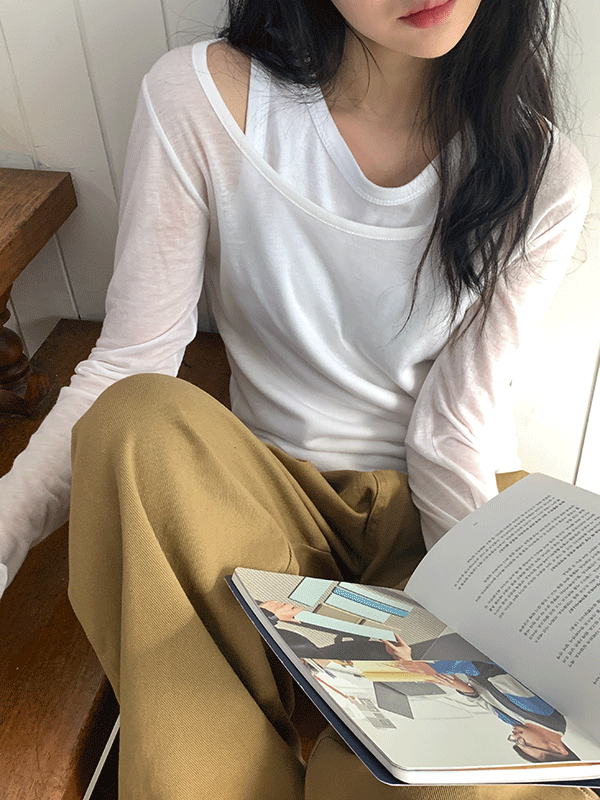 [양면착용가능/그레이소량당일] 프리피 울 텐셀 레이어드 긴팔 티셔츠