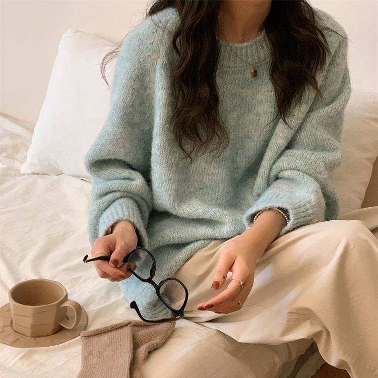 (당일출고/울) 긴팔 라운드넥 루즈핏 오버핏 빅사이즈 가을 겨울 앙고라 파스텔 모헤어 보카시 니트 티셔츠 스웨터 5color