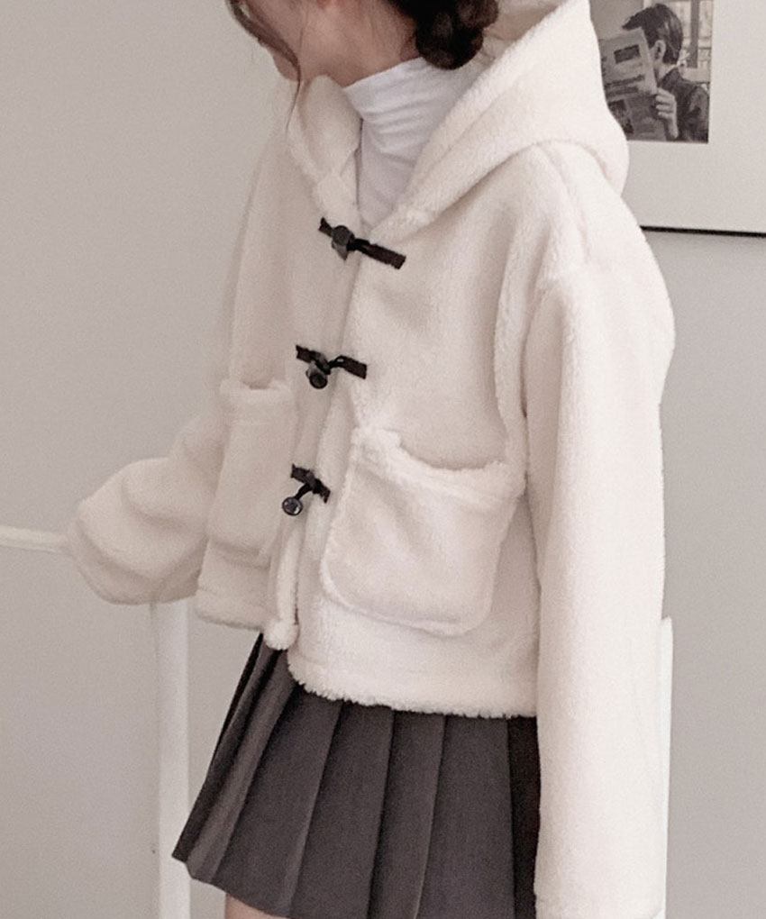 (당일) 포근 뽀글이 후드 양털 플리스 떡볶이 단추 숏 자켓 코트 (2color)