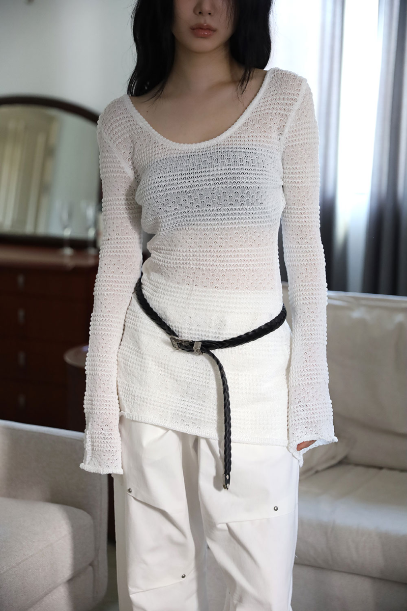 텍스처 네트 롱 슬림 니트탑
