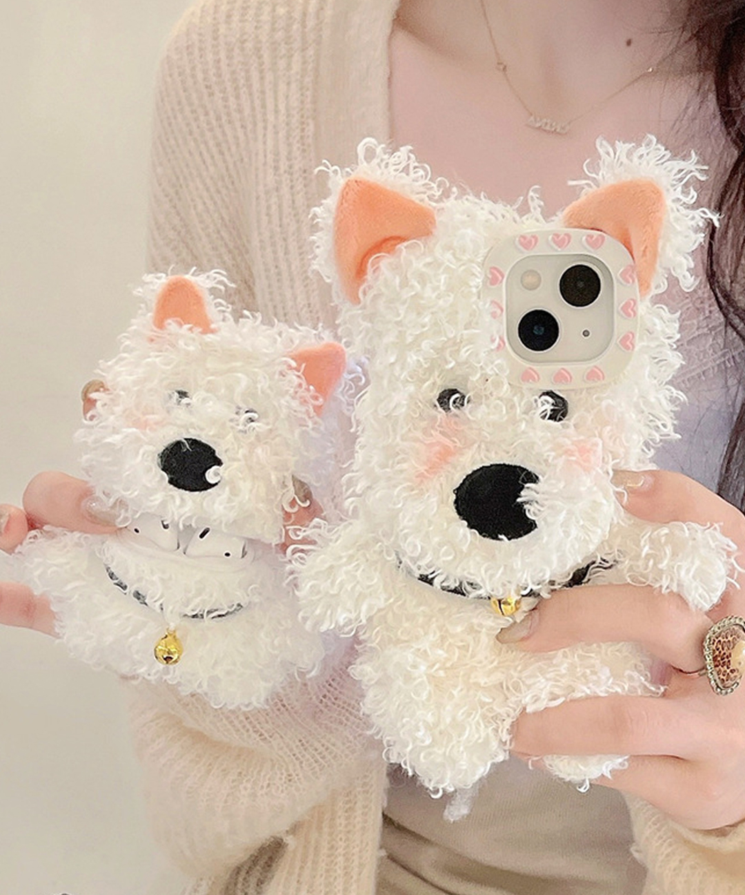 아이폰 16 15 14 13 12 11 프로 맥스 뽀글이 인형 털 퍼 강아지 에어팟 4 1 2 4세대 범퍼 실리콘 pro max 귀여운 디자인 케이스