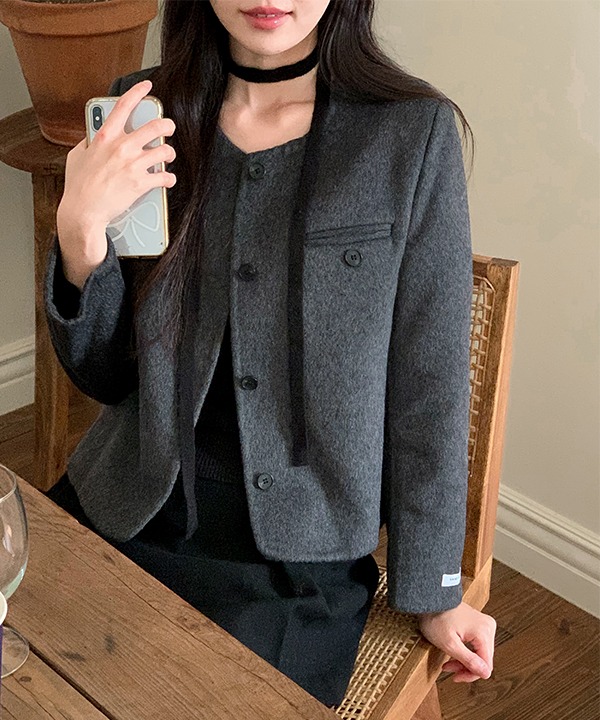 [울100][Handmade][하객룩]뮤트 울 라운드 핸드메이드 숏 코트 자켓 (3color)