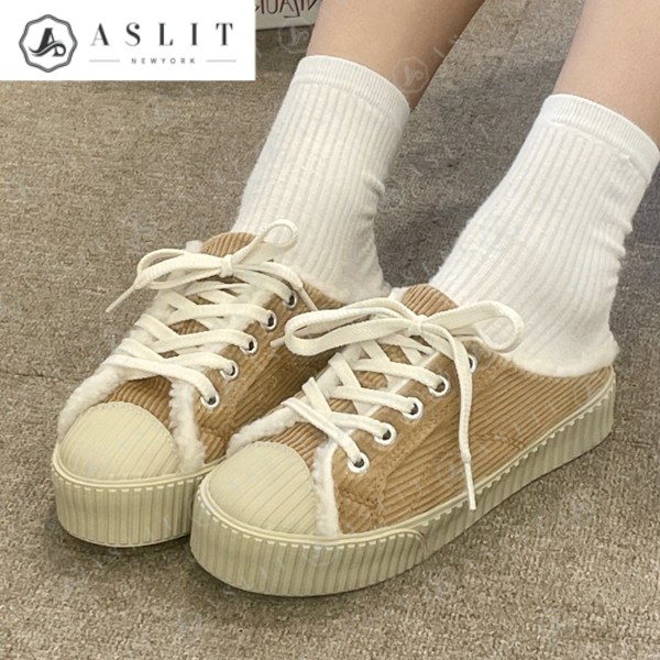 [애슬릿] 코듀로이 털 여성 뮬 스니커즈 블로퍼 슬리퍼