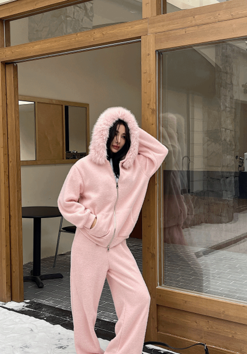 [MADE][탈부착가능] 퍼 후드집업 팬츠 세트