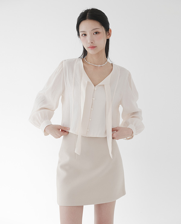 러빙 핀턱 세미크롭 리본 타이 블라우스 (3color)