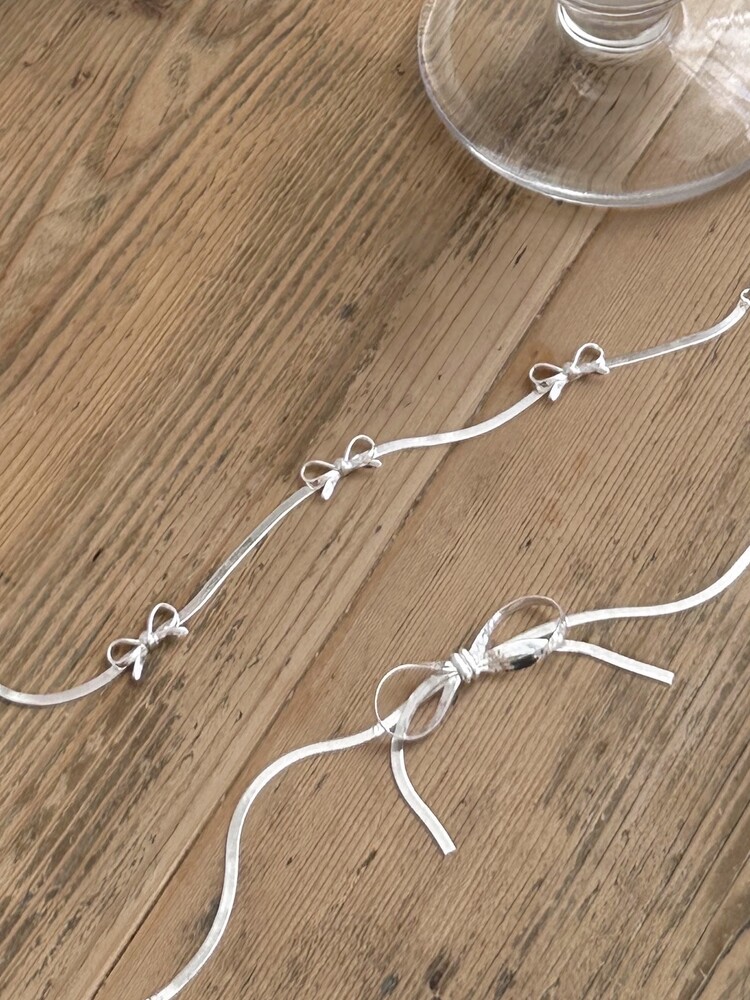 (92.5 silver) tiny ribbon bracelet 러블리 미니 리본 뱀줄 스네이크체인 은 팔찌 / 2 colors