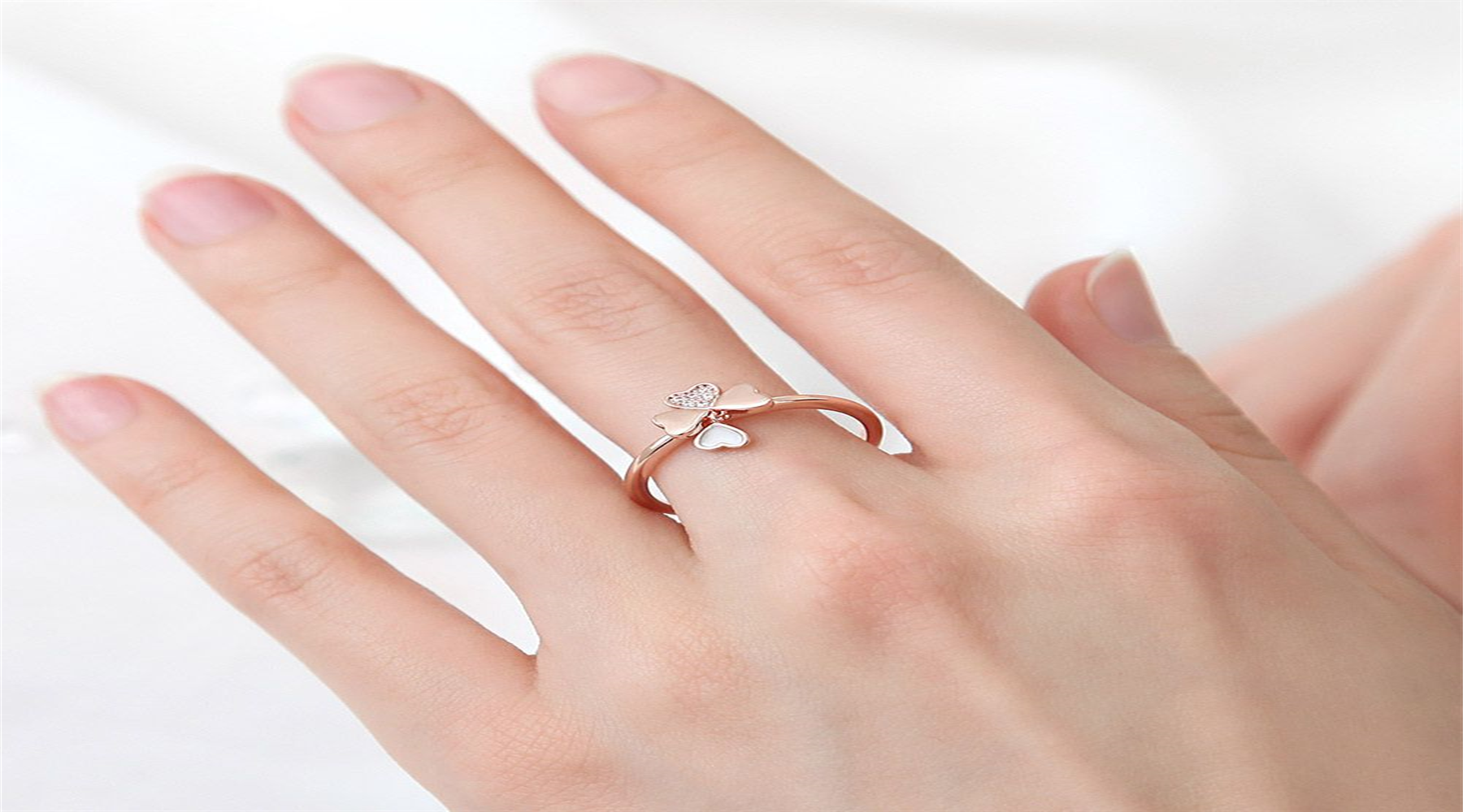 14KGP 클로버 행운 로즈골드 레이어드 큐빅 패션 반지