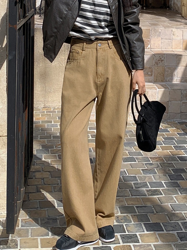 [25-38] [기본/롱] 던티드 와이드 데님 팬츠 청바지( 봄-가을-데일리룩-데이트룩-캐주얼룩-캠퍼스룩-러블리룩-하객룩-격식룩-출근룩-페미닌룩-빅사이즈-38사이즈-자체제작-통통녀 )