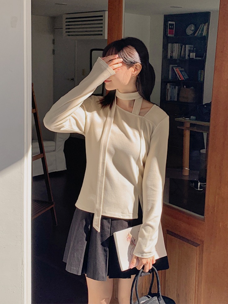 [44-120] 브티네릴 스판 타이 밑단 트임 티셔츠 ( 봄-가을-데일리룩-데이트룩-캐주얼룩-캠퍼스룩-러블리룩-하객룩-격식룩-출근룩-빅사이즈-120사이즈-자체제작-페미닌-통통녀 )