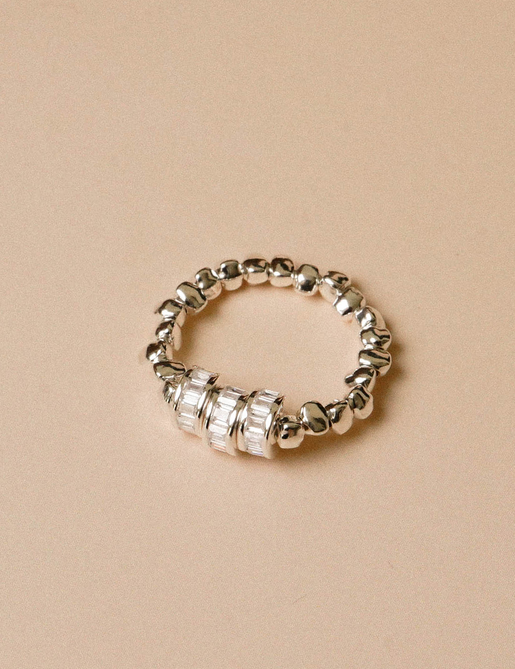 베네노 실버 925 가로큐빅 론델 은볼 칩 고무줄 반지