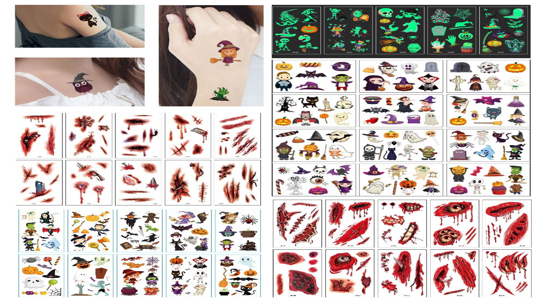 품명:할로윈 캐릭터 상처 흉터 방수 야광 타투 스티커 10종 / 모델명:상세정보별도표시
