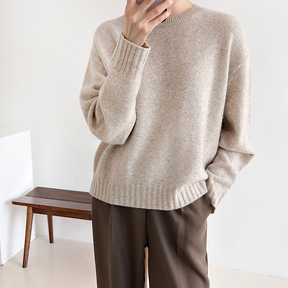 루즈핏 박시 울 라운드 무지 여자 겨울 캐주얼 이너 네이비 그레이 베이지 니트 티셔츠