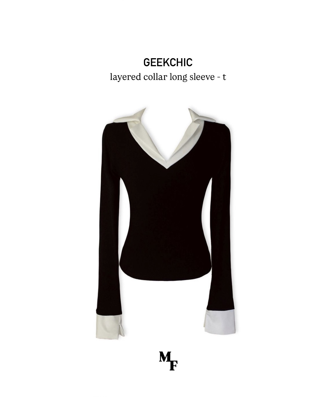 [당일출고보장!!🚀/Geekchic] 긱시크 카라 레이어드 롱슬리브 셔츠 탑 - t