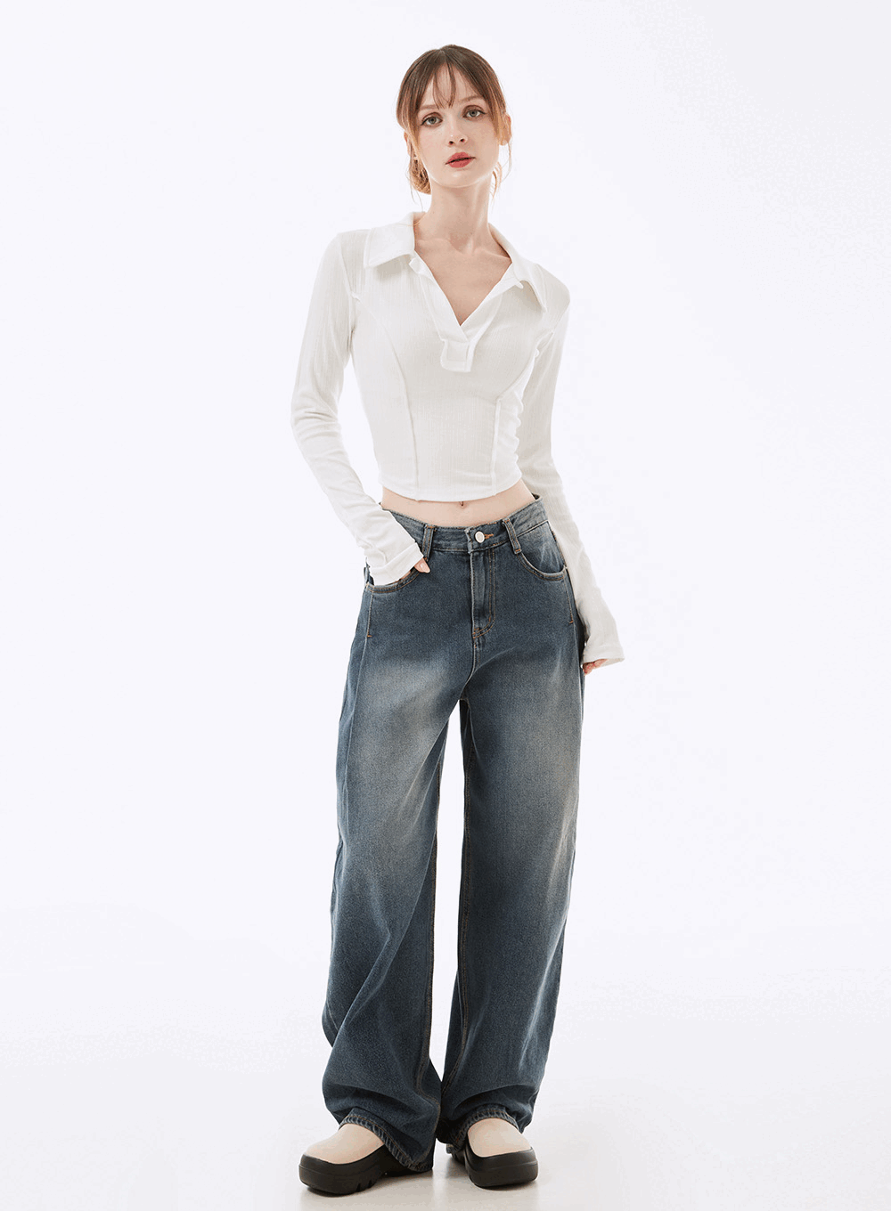 아우티 핀턱 벌룬와이드 데님팬츠