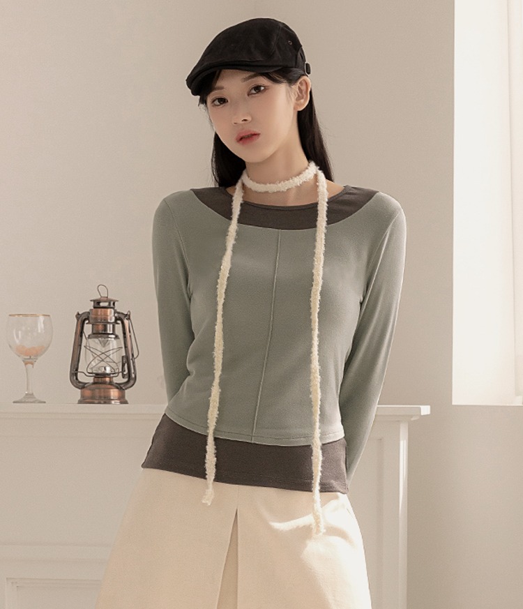 [44-120] 스컬펀 스판 배색 레이어드 티셔츠( 봄-가을-데일리룩-데이트룩-캐주얼룩-캠퍼스룩-러블리룩-하객룩-격식룩-출근룩-빅사이즈-120사이즈-자체제작-부드러운-다이마루-편안한-통통녀 )