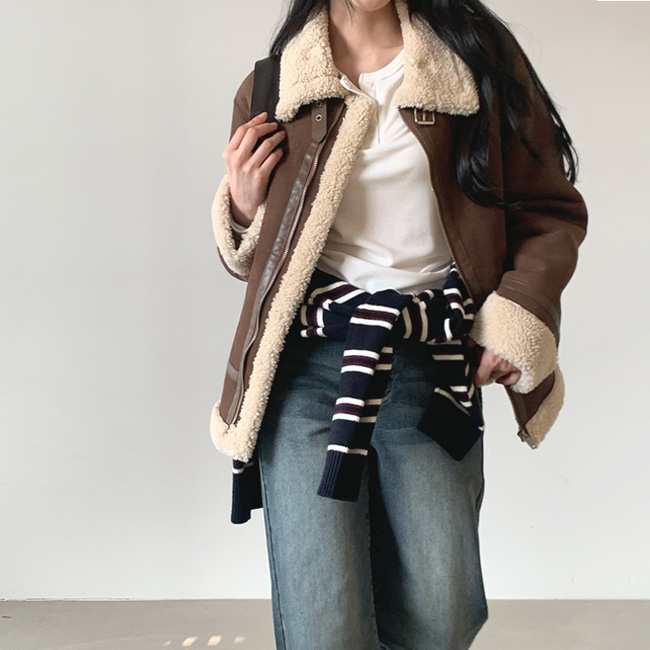 [💥한정수량 파격특가💥][+2사이즈/안감양털/하이넥][하프무스탕/겨울무스탕/겨울자켓/겨울아우터/스웨이드자켓/하이넥무스탕][MADE]베어링스웨이드무스탕 - 4color