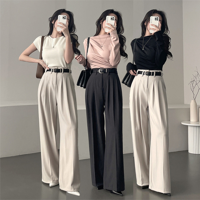 [🖤벨트증정/모델핏보장🖤] 가나다란 아르고 벨트세트 찰랑핏 하이웨스트 와이드 슬랙스 3color
