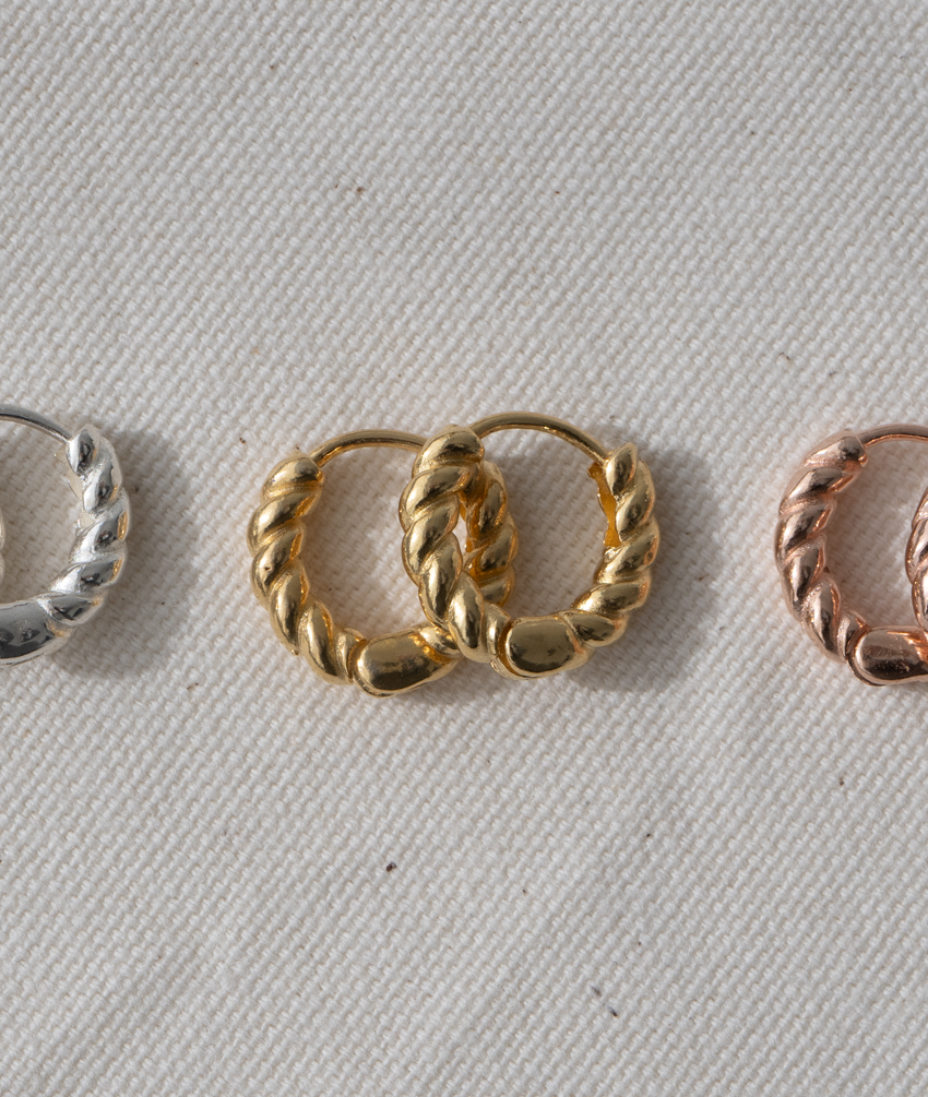 실버 925 트위스트 볼드 원터치 링 귀걸이 (한쌍)