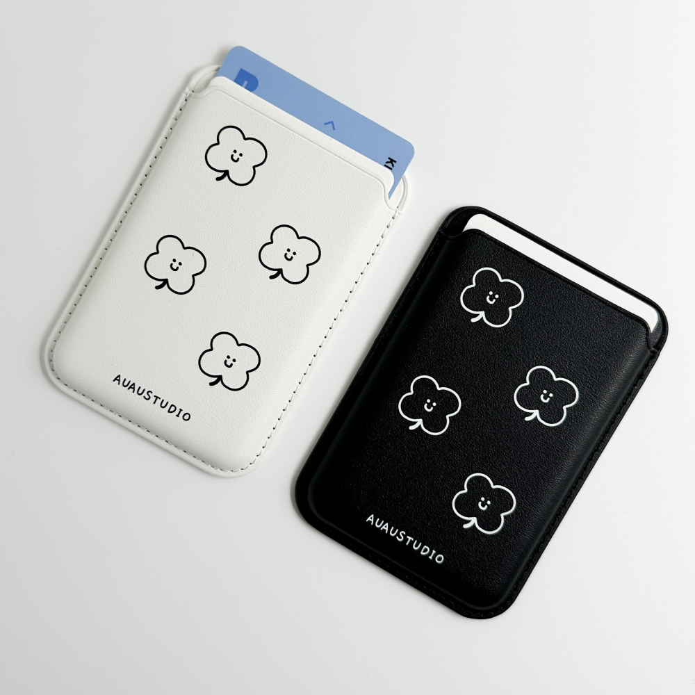 심플 네잎클로버 맥세이프 가죽 카드지갑