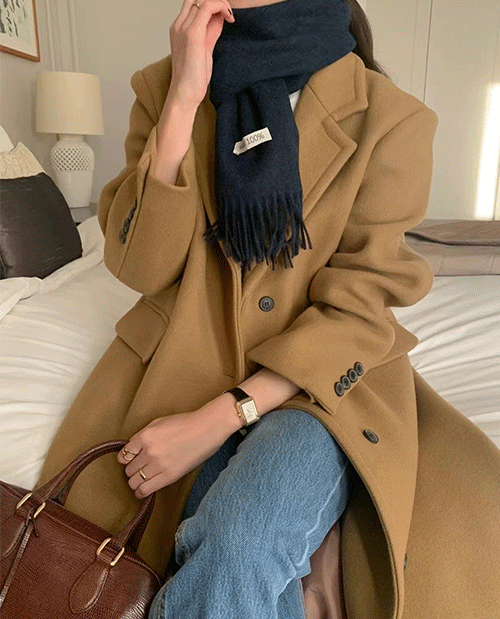 모던 싱글버튼 카라 박스 루즈핏 오버핏 하객룩 롱 코트 3color