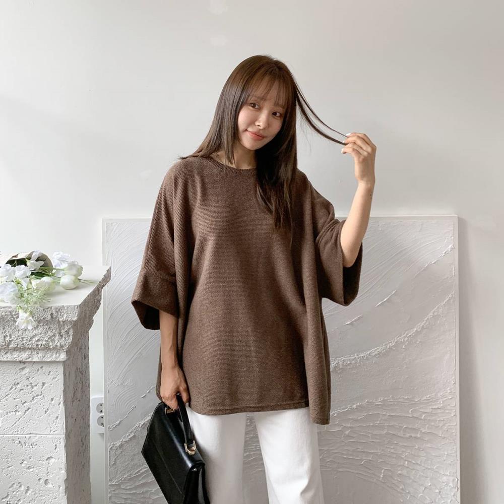 여자 레이어드용 기모노핏 편한 FW 오버핏반팔니트 니트