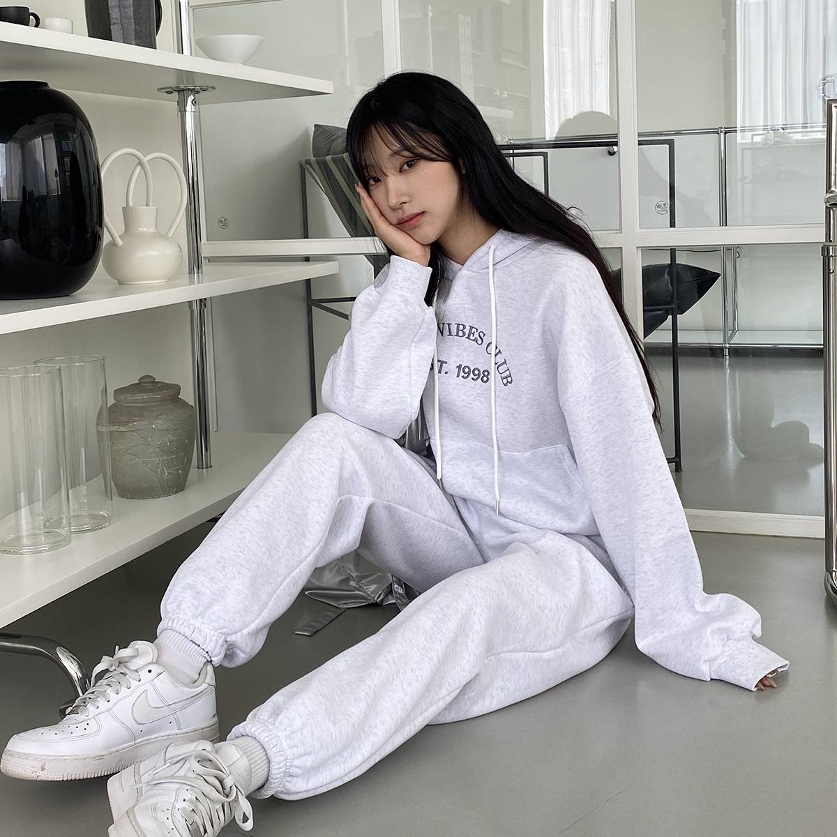 자수 기모 셋업 바지 상하의 백염 베이지 먹색