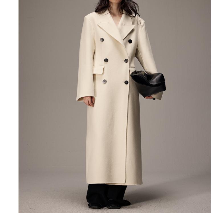 캐시미어10% 롱 코트 울90% 화이트 블랙 더블 숄카라넥 핸드메이드 정장 루즈핏 맥코트